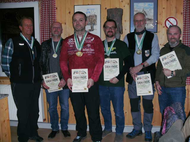 Pistole 25 m Gruppe A: Hirz, Pail, Gröbl, Acham, Lautner, Sippl A.